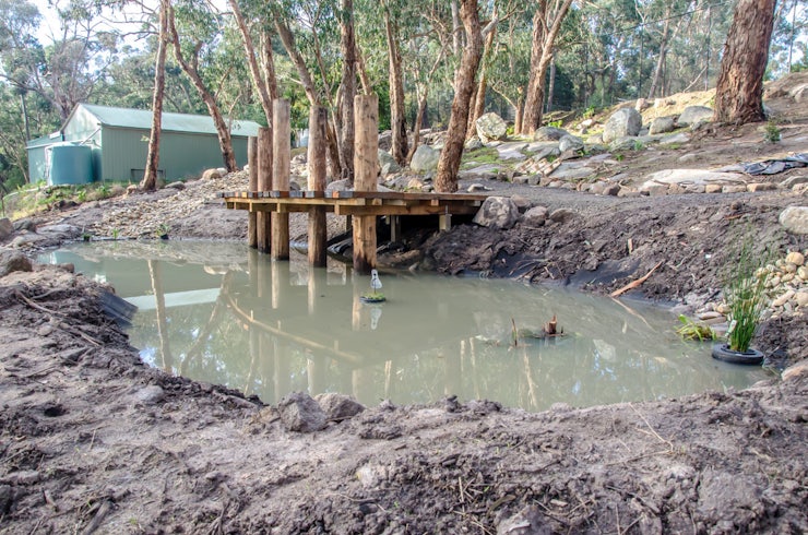 Graham checking out our new stone bridge (above) over the overflow creek.
