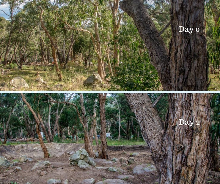 The work was begun in May 2017. It was amazing how quickly the paddock view changed in just a few days. However, it did take four months of work, or 36 days of activity by the landscaper and his team, to get the job done. This was just the landscaping – my husband and I are managing the planting over time. We were grateful the work was being done through Autumn through to Spring (for those in the northern hemisphere, our Autumn starts in March, Winter in June and Spring in September) as this allowed us to see where the water coursed during heavy rainfall and to work out an action plan for overflow for our billabong – which is in the plan above. Also, the billabong had to be moved further to the centre due to a very large boulder being in the way of the digging. We do have natural granite right through our property which we have taken advantage of.