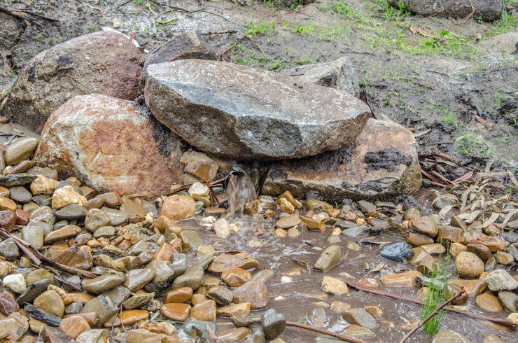 When it’s raining, my husband and I don our raincoats, grab umbrellas and race out into the heavier showers of rain to see how our creek beds and overflow are working. So lovely to see water flowing in the creek beds and out the overflow of the billabong and to hear it rushing along towards and through the drain. We have a grill we can stand over to watch (although it wasn’t raining on the day I took this shot).
