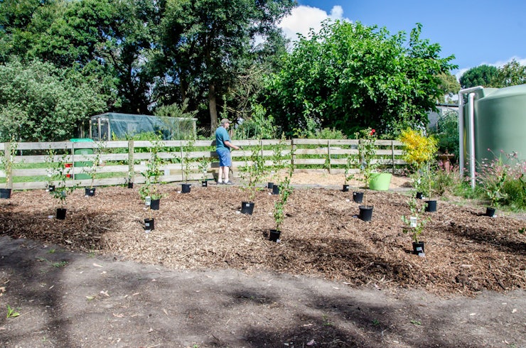 Here, we’ve planned where they will be planted, with around 1-1.5mtrs between each one. We’ve tried not to do straight lines but wasn’t always easy. We started with the perimeter first, and then inside to place each one.