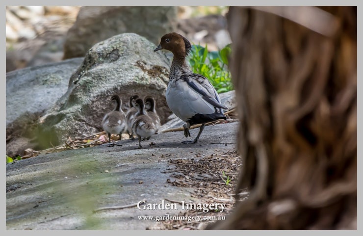 We got the biggest surprise in our bush paddock garden recently. I went outside to do a bird count for the latest Aussie BirdCount and ventured down the hill to look at our plants and watch for birds. Imagine my surprise when I saw some ducklings with two adult Australian Wood Ducks.